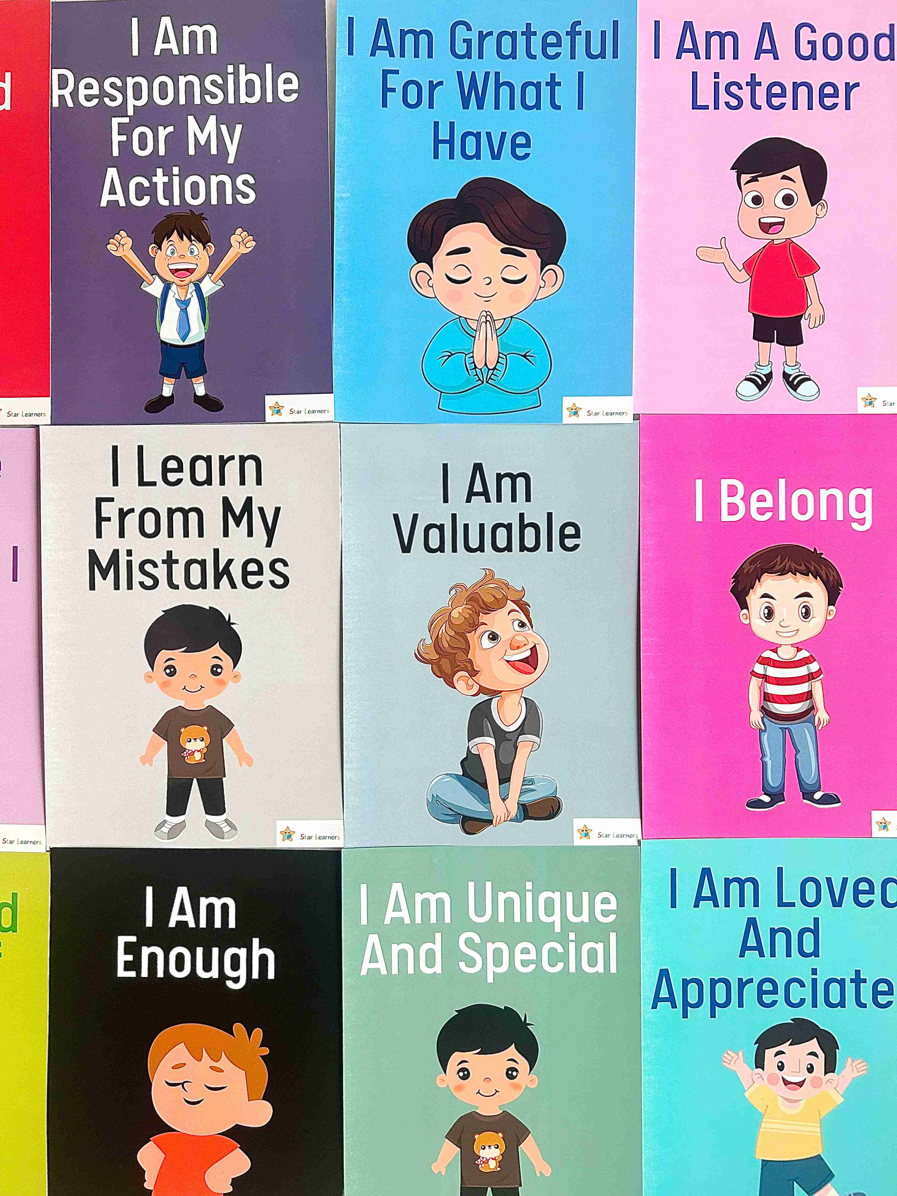 This is a set of beautifully designed cards featuring positive, empowering statements that help children build confidence, resilience, and a positive mindset. Each card showcases colorful, engaging images alongside an uplifting affirmation, making it a fun and effective tool for encouraging emotional well-being and self-esteem. Use the cards each day to start the morning with an empowering affirmation or as a calming bedtime ritual.