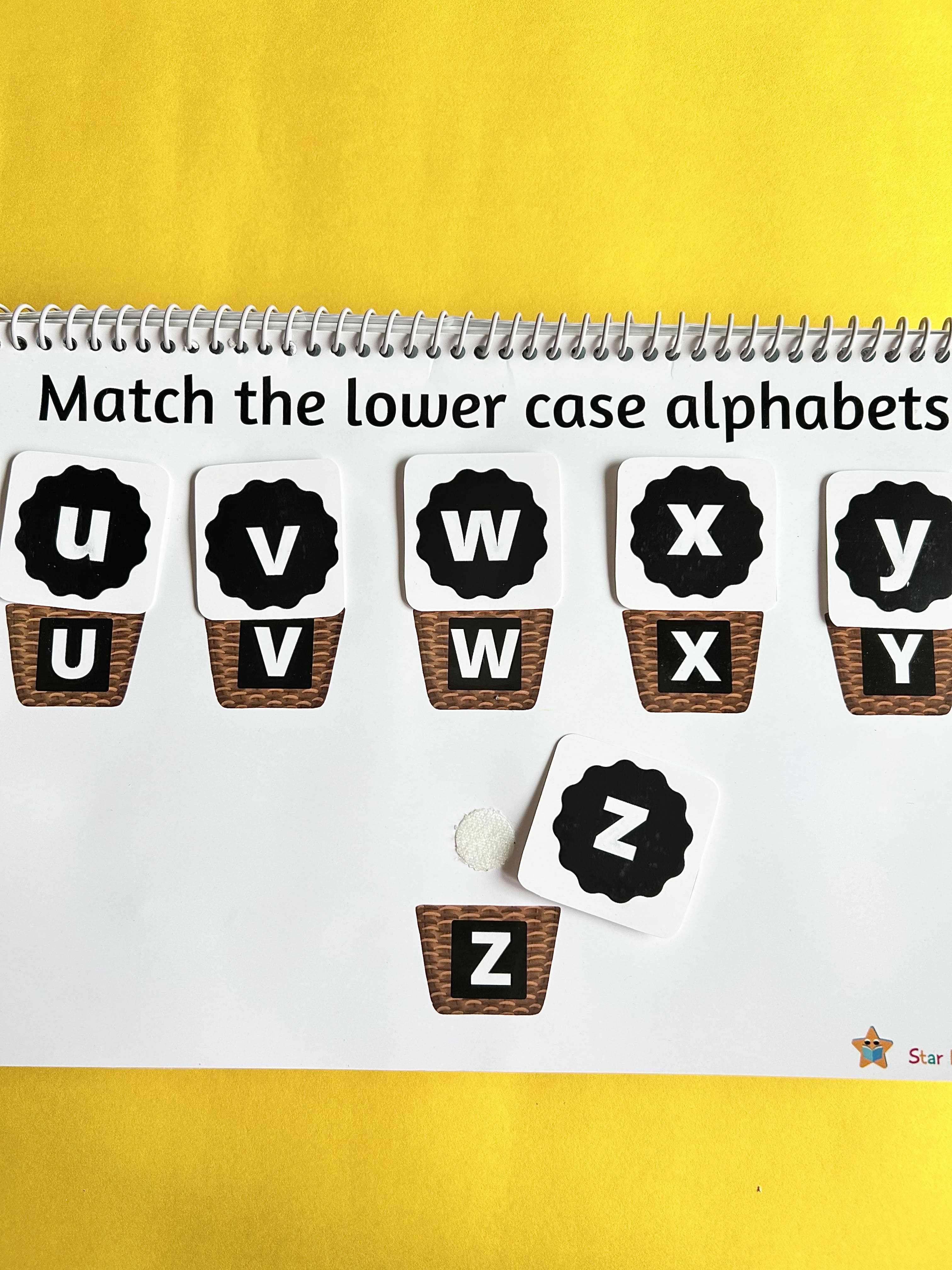 Kids can match uppercase to uppercase, lowercase to lowercase, and then uppercase to lowercase for an extra challenge. With colorful Velcro pieces, this hands-on book builds letter recognition and fine motor skills through play.
