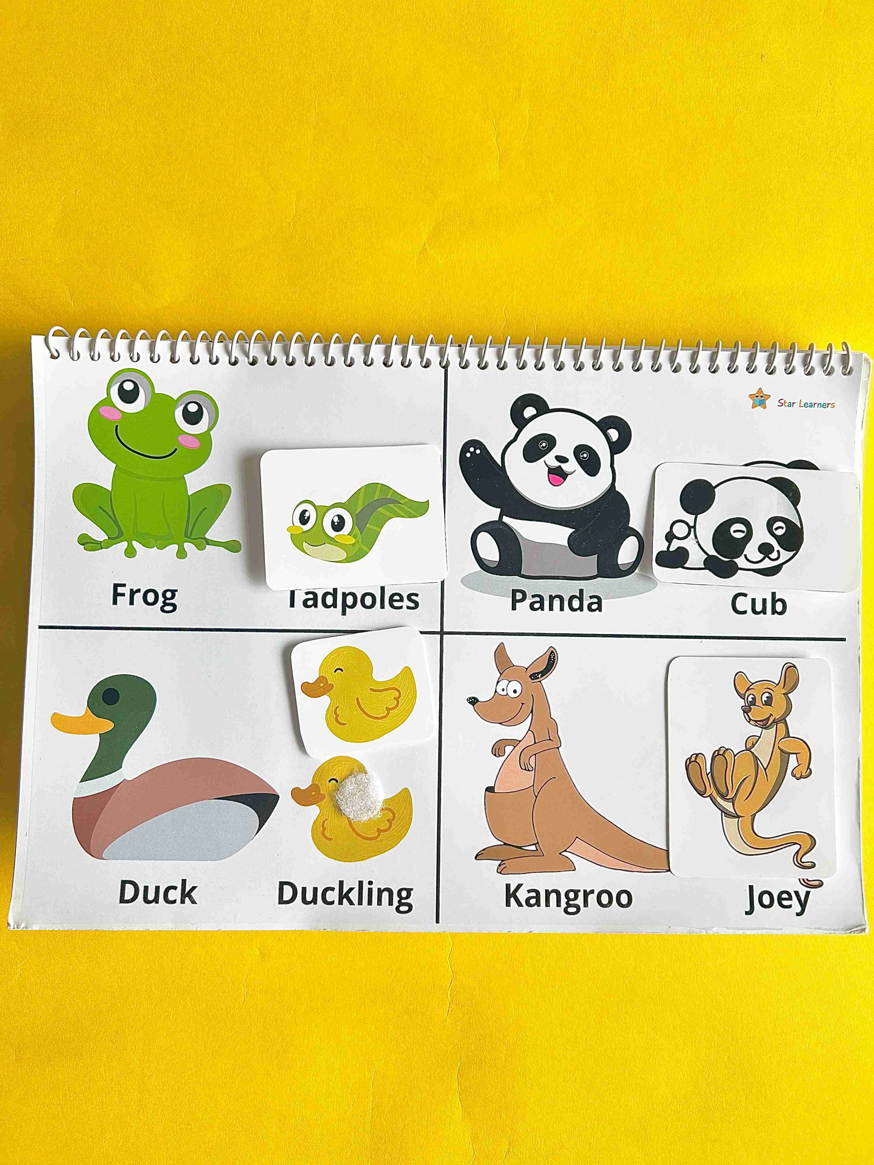 Animals And Their Babies: Learn about the unique names of animal babies. Children can match animal young ones using velcro pieces