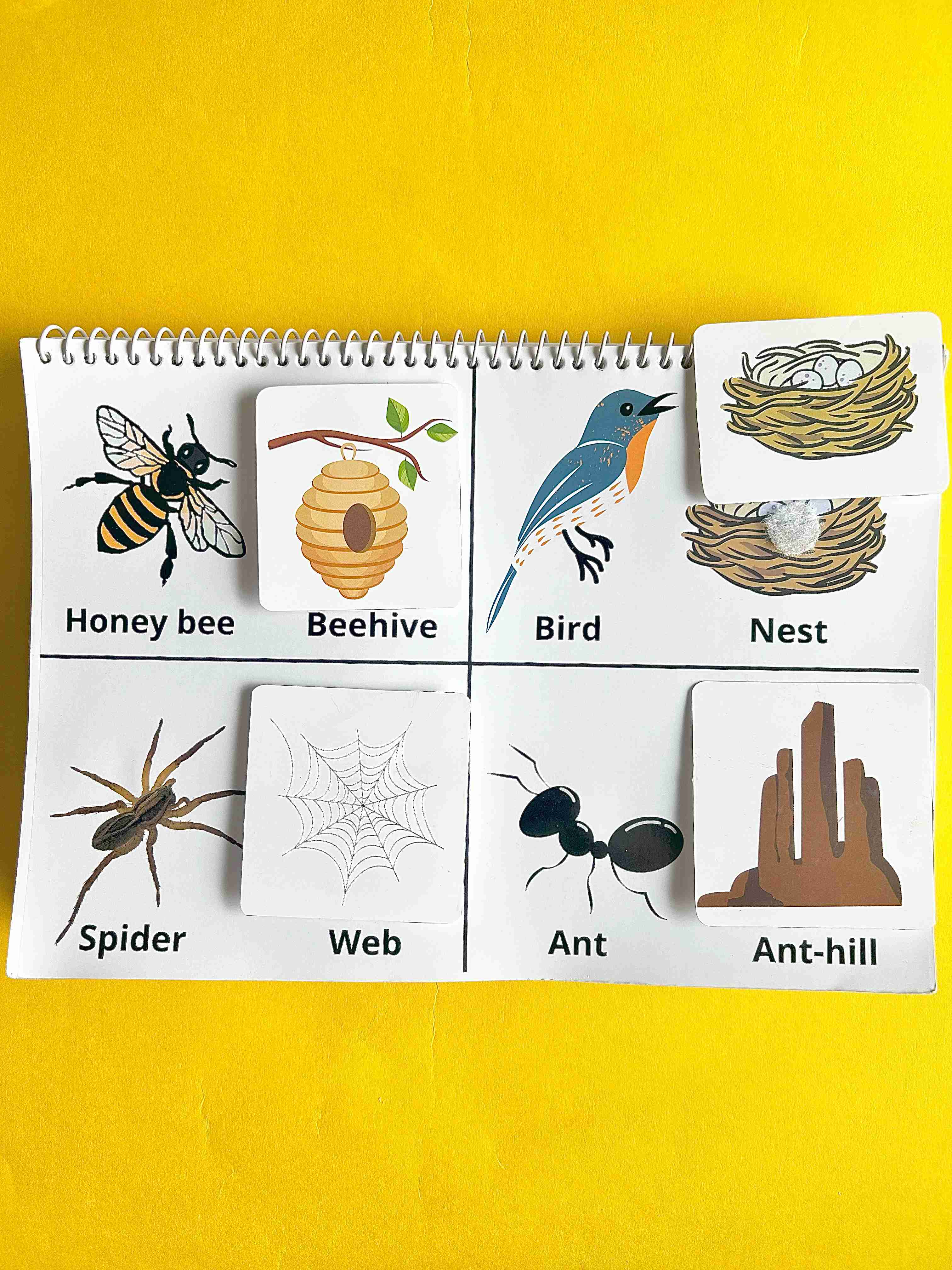 Animals And Where They Stay: Discover the habitats of animals like forests, jungles, and deserts. Using the velcro pieces helps them understand where different creatures live.