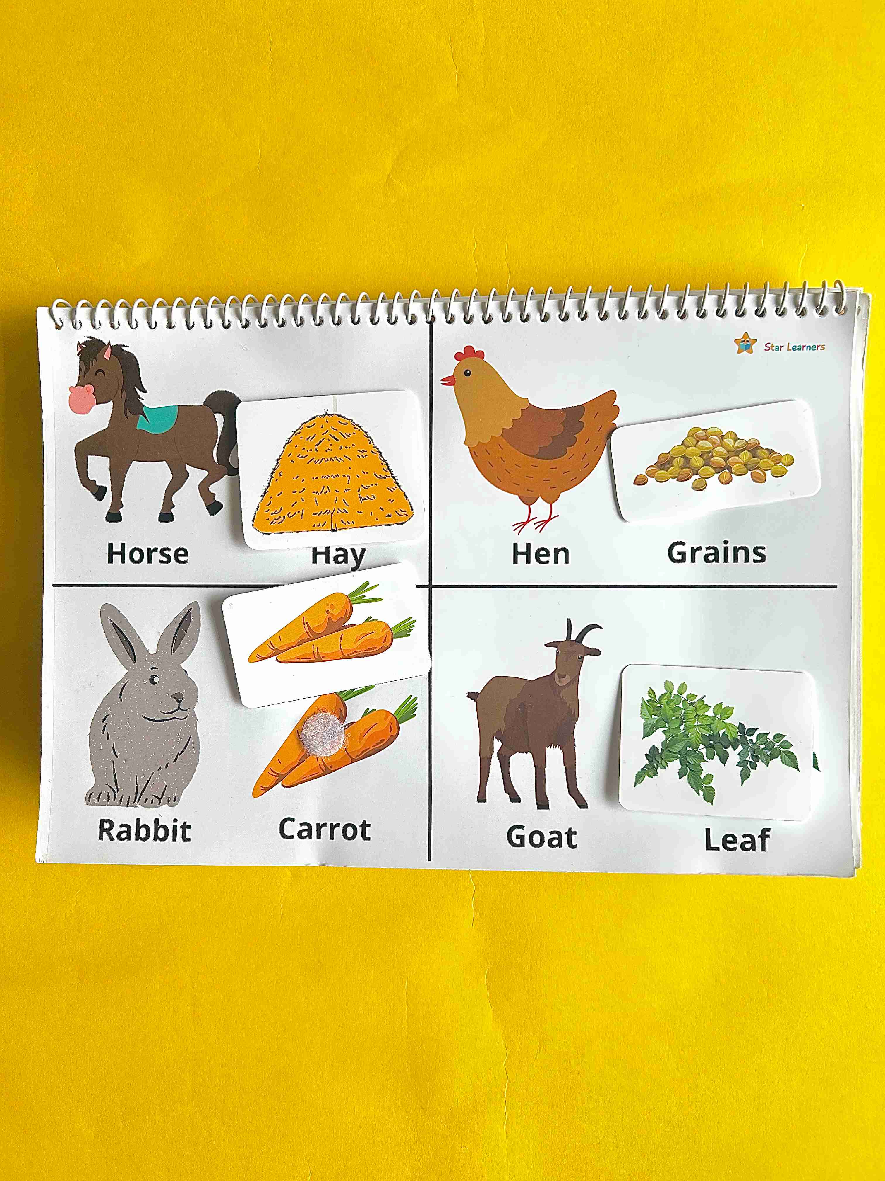 Animals And What They Eat: From herbivores to carnivores, kids can explore the diets of various animals. They can use the velcro pieces to pair animals with the foods they eat.