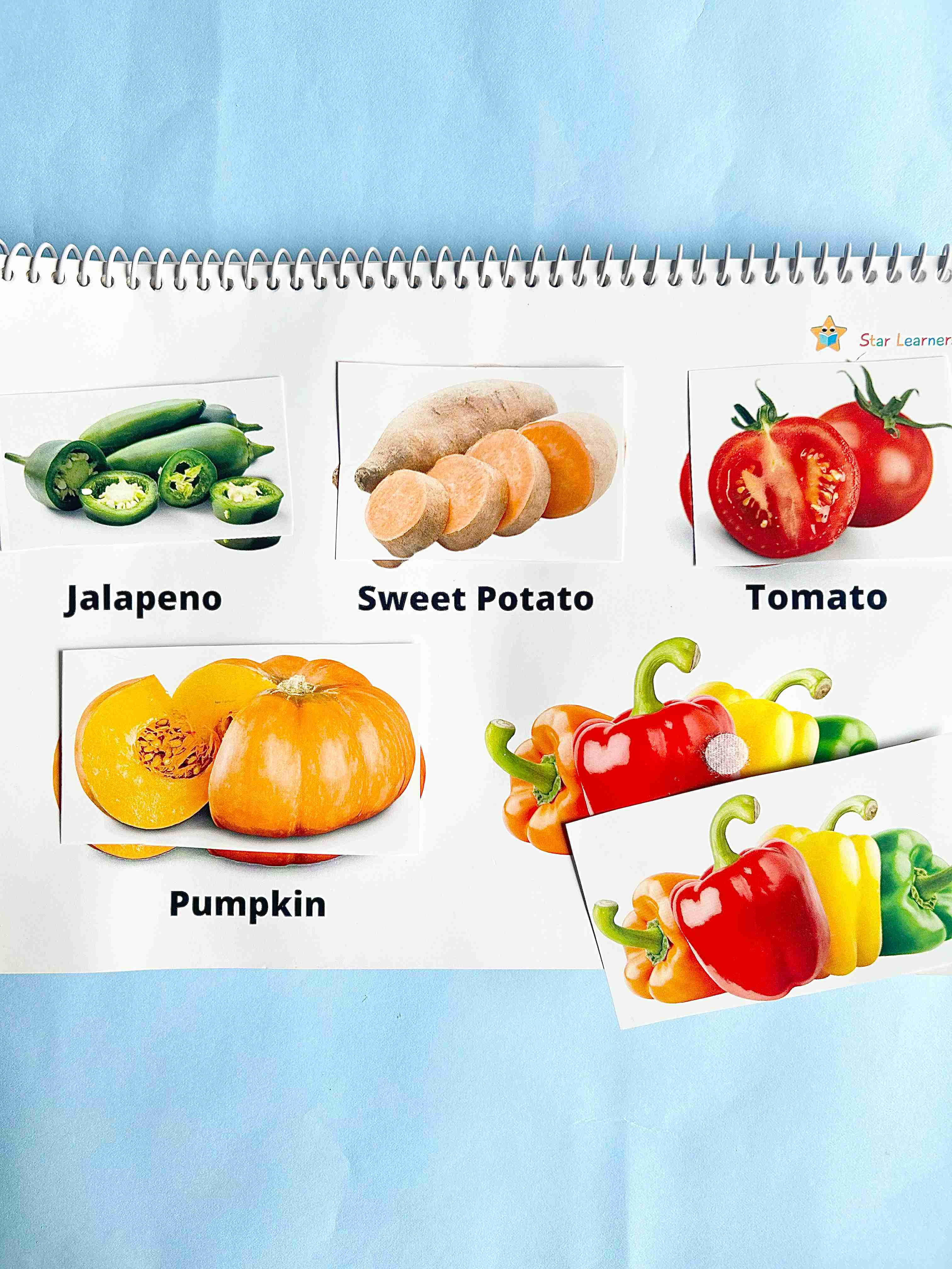 This interactive Velcro-Based Fruits and Vegetables Book is a fun and educational tool designed for young learners. It features 24 different fruits and 28 different vegetables. The book also includes sorting activity to help kids distinguish between fruits and vegetables, encouraging cognitive and categorization skills.