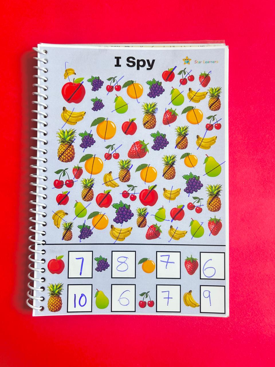 Make learning fun with this interactive I Spy Reusable Activity Book! Perfect for young learners, this book enhances observation, counting, and problem-solving skills through colorful and engaging “I Spy” challenges. It’s perfect for kids to develop skills like number recognition, counting skills, and attention to detail.