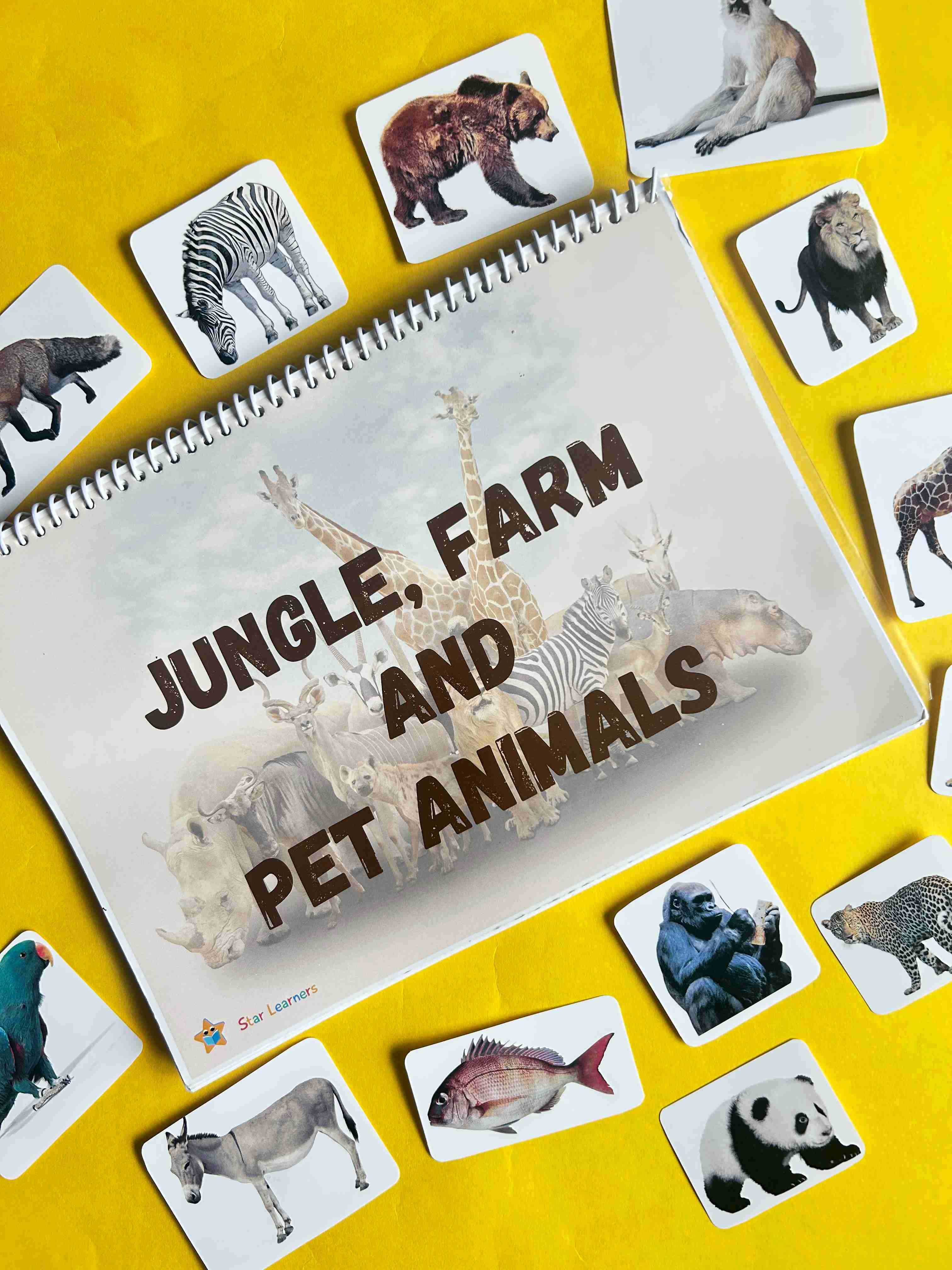 Introduce your little one to the exciting world of animals with this engaging Velcro-Based Jungle, Farm, and Pet Animals Book! Perfect for curious minds, this interactive book features introduction to the fascinating creatures found in the jungle, on the farm, and in your own home as pets. The clearly categorized sections help children understand the difference between jungle, farm, and pet animals.