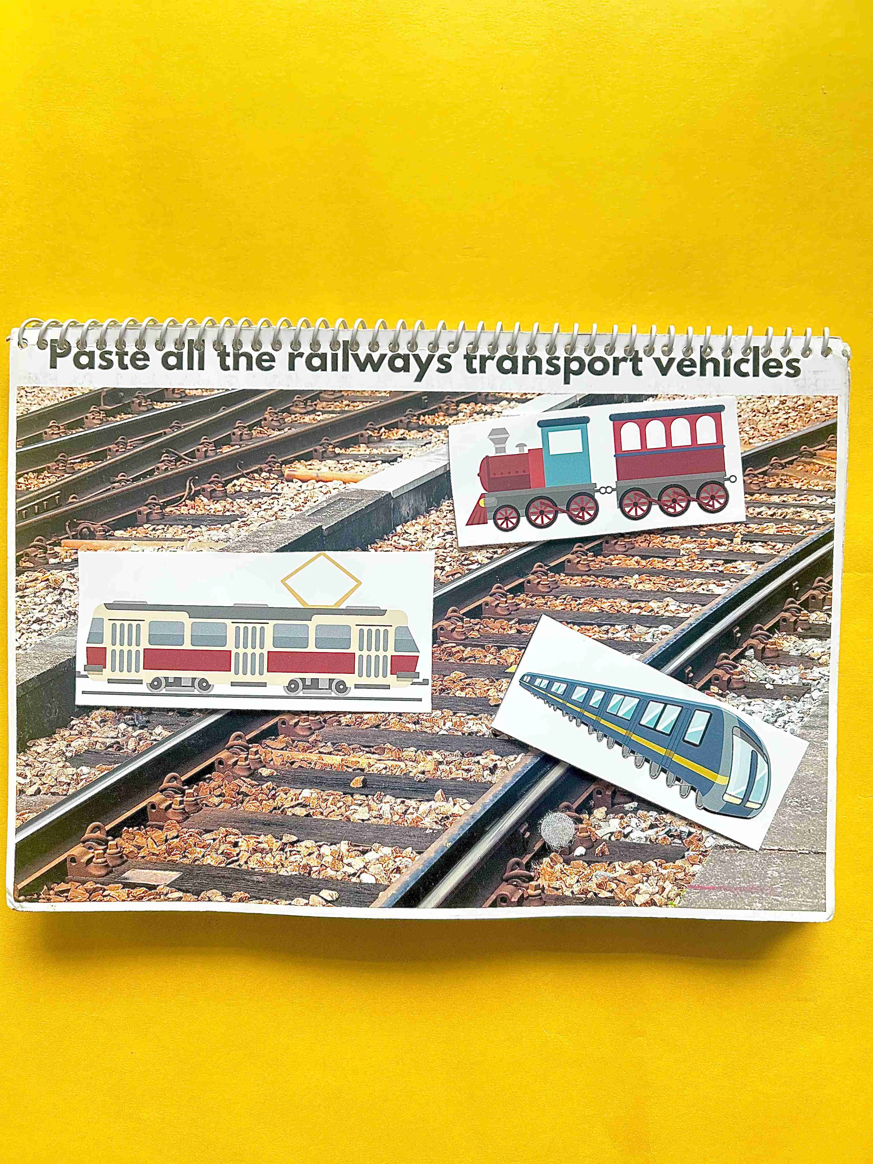 Kids can match vehicles to their correct modes using velcro-based pieces, making learning interactive and enjoyable. A dedicated section at the end allows kids to sort and classify vehicles based on their mode of transportation.