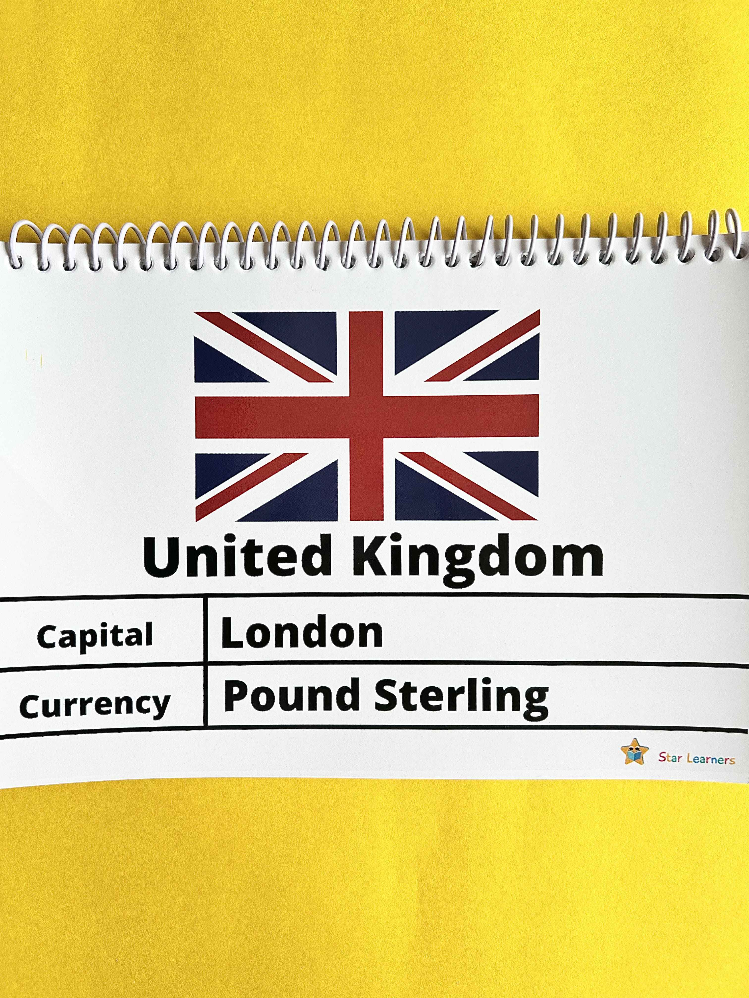Ideal for young learners, travellers, and anyone interested in world cultures, this book is a great way to enhance your global knowledge and make learning about the world fun and interactive! Explore the world with this educational set featuring flags, capitals, and currencies from 25 countries. Designed to engage young learners, this book showcases the flag of a country, along with its capital city and official currency, providing a comprehensive learning experience for children and geography enthusiasts.